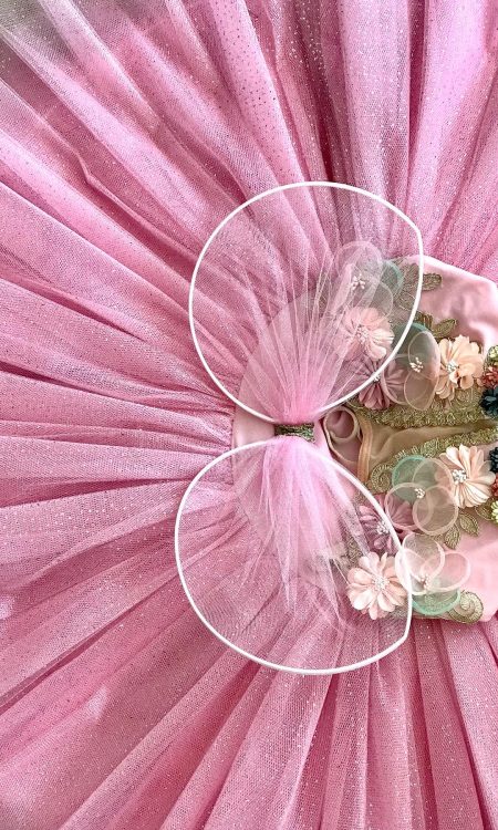 - Alt tütüsü üzerine özel kalıp oturtularak kuş tüyleri ve parlak taşlarla bütünleştirilmiş balenli kuğu tütüsü.