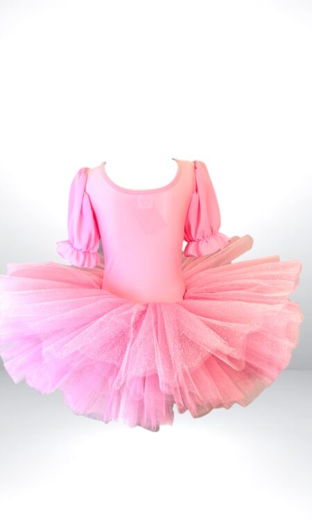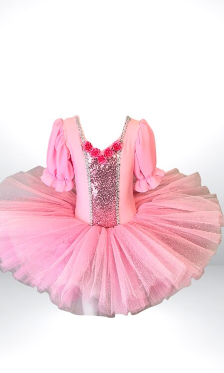 licra kumaş üzerine payet ve çiçeklerle süslenmiş kısa tütü