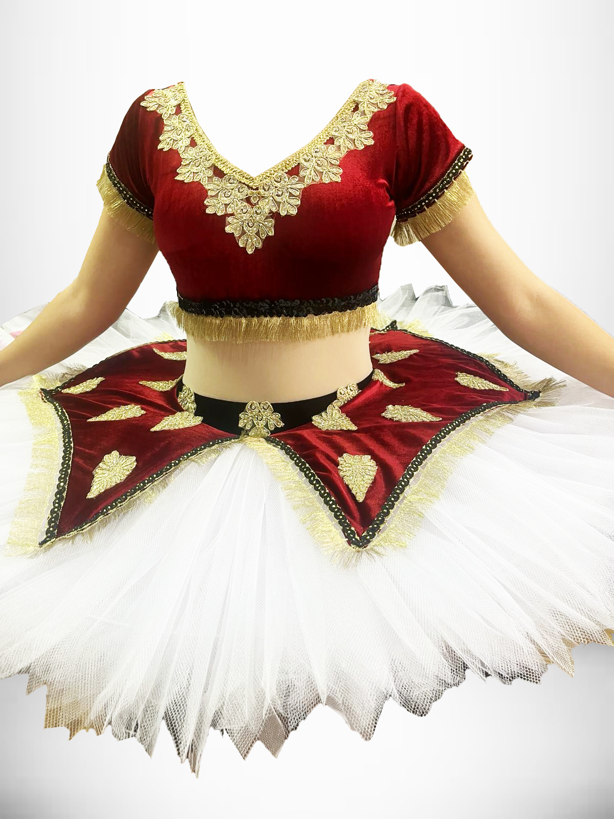 Taşlar ve apliklerle işlenmiş profesyonel balenli tütü