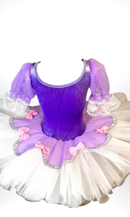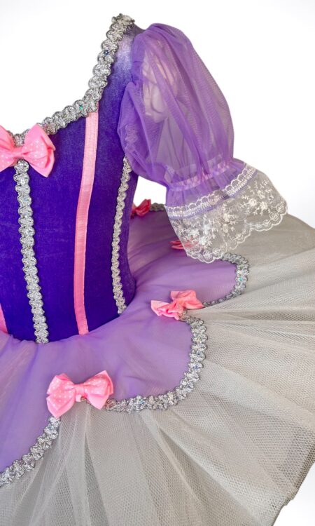 kadife üst üzerine aplik ve kurdelelerle işlenmiş zarif etek kesimli tütü